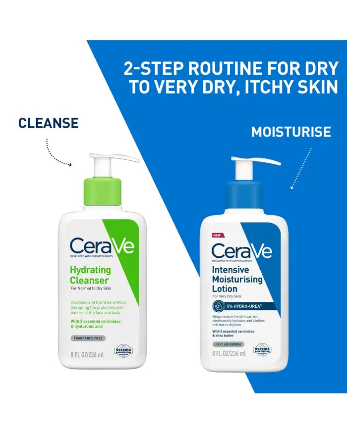 Choosing the right moisturising lotion for extra dry, itchy skin can provide comfort and hydration to the skin moisture barrier. Developed with dermatologists, CeraVe Intensive Moisturising Lotion targets five key signs of dryness—itching, tightness, roughness, flaking, and dryness-related redness or discoloration.